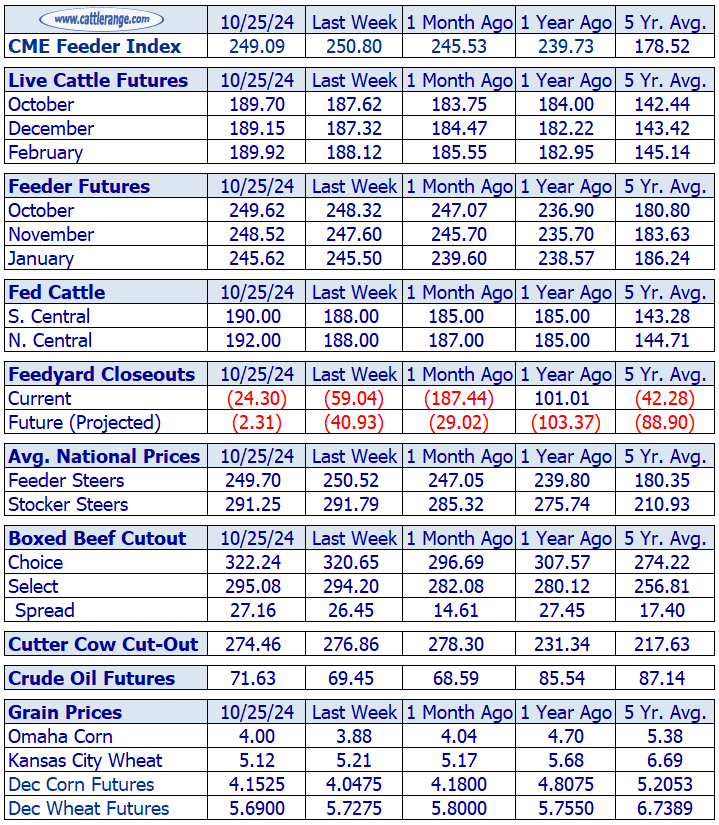 Weekly Cattle Market Overview for Week Ending 10/25/24