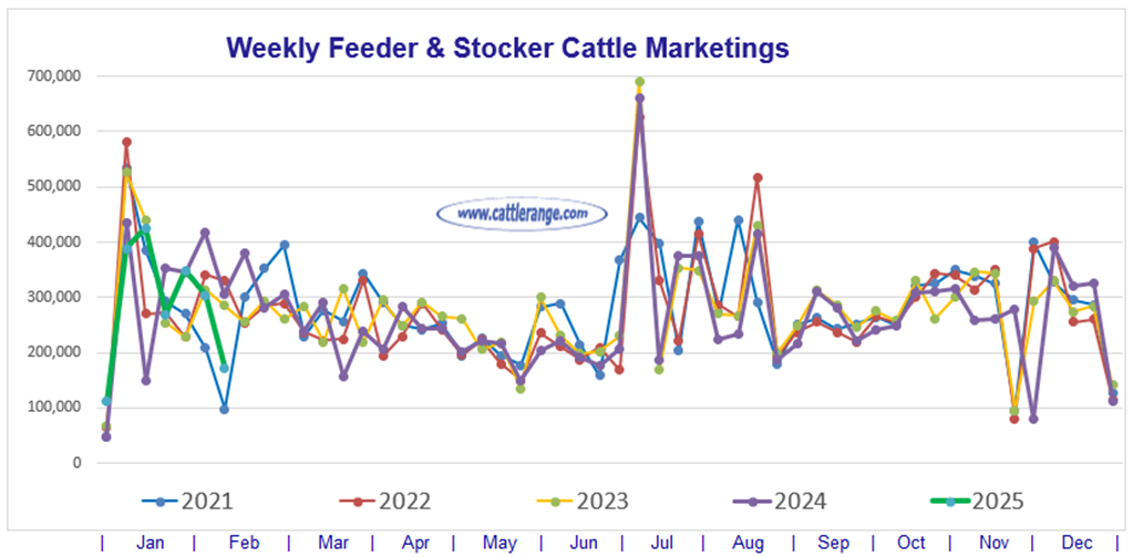 Data released by USDA on 2/18/25 for the week ending 2/15/25...
