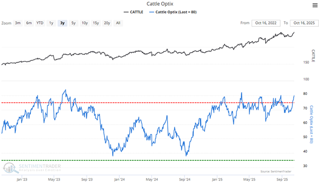 Cattle - 3 Year Chart... Blue line tracks 'Market Sentiment'