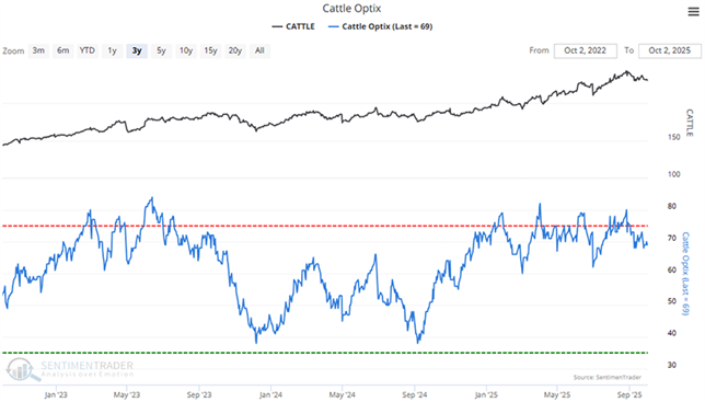 Cattle - 3 Year Chart... Blue line tracks 'Market Sentiment'