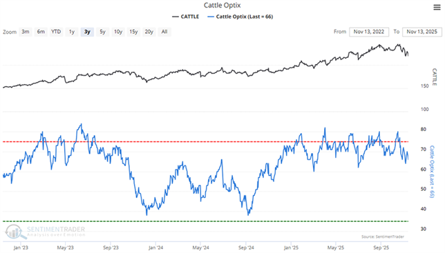 Cattle - 3 Year Chart... Blue line tracks 'Market Sentiment'