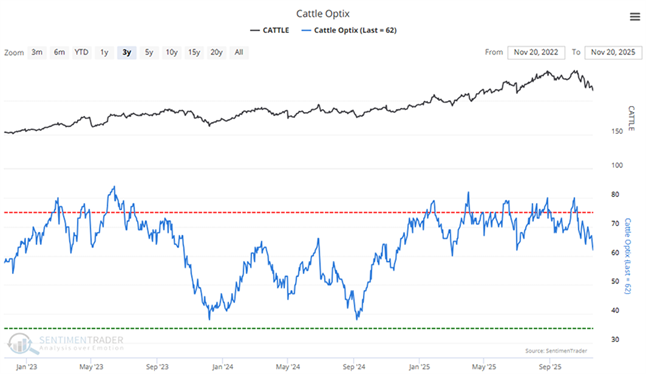 Cattle - 3 Year Chart... Blue line tracks 'Market Sentiment'
