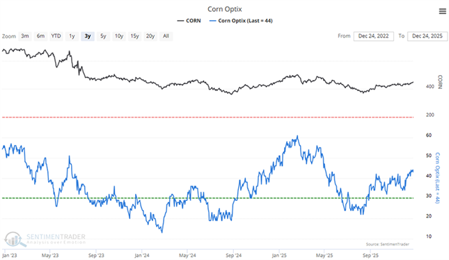 Corn - 3 Year Chart... Blue line tracks 'Market Sentiment'