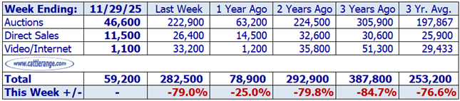 Data released by USDA on 12/1/25 for the week ending 11/29/25...