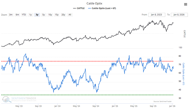 Cattle - 3 Year Chart... Blue line tracks 'Market Sentiment'