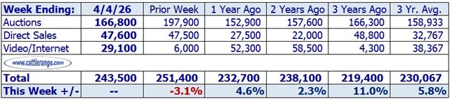 Data released by USDA on 4/6/26 for the week ending 4/4/26...