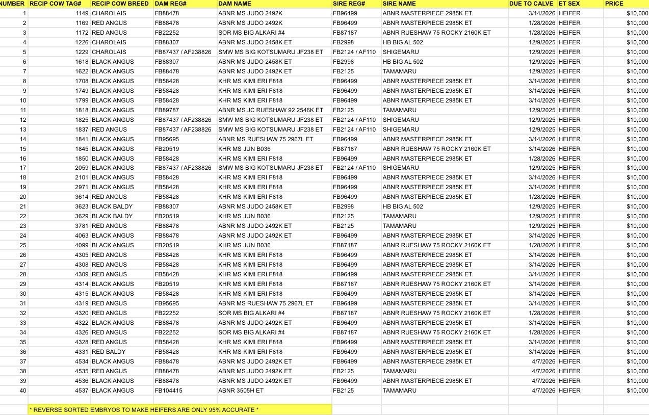 40 Head of Bred Recip cows that have been ET (embryo transfer) with a registered Fullblood Red Wagyu heifer embryo...