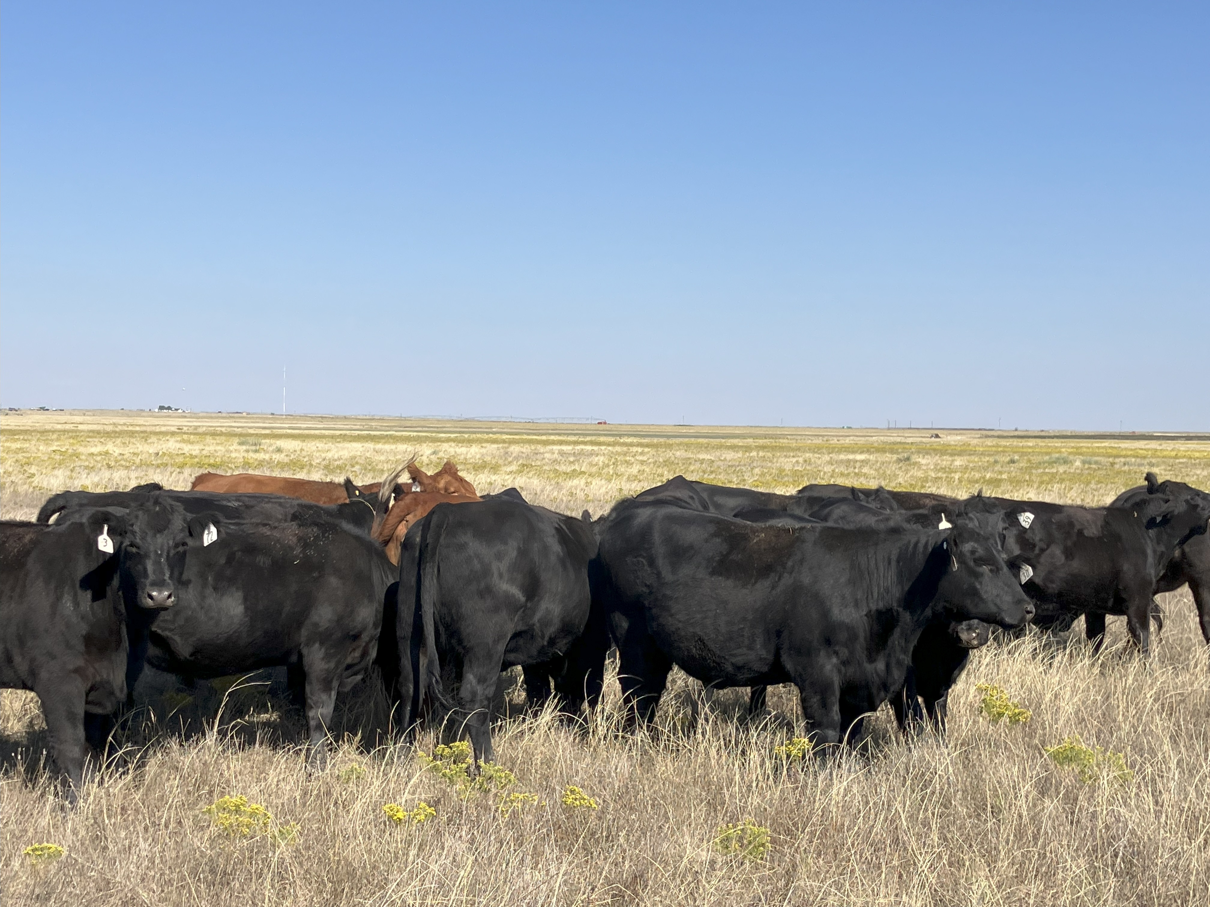 - Predominantly black, 6 Red Angus and a few black motts.