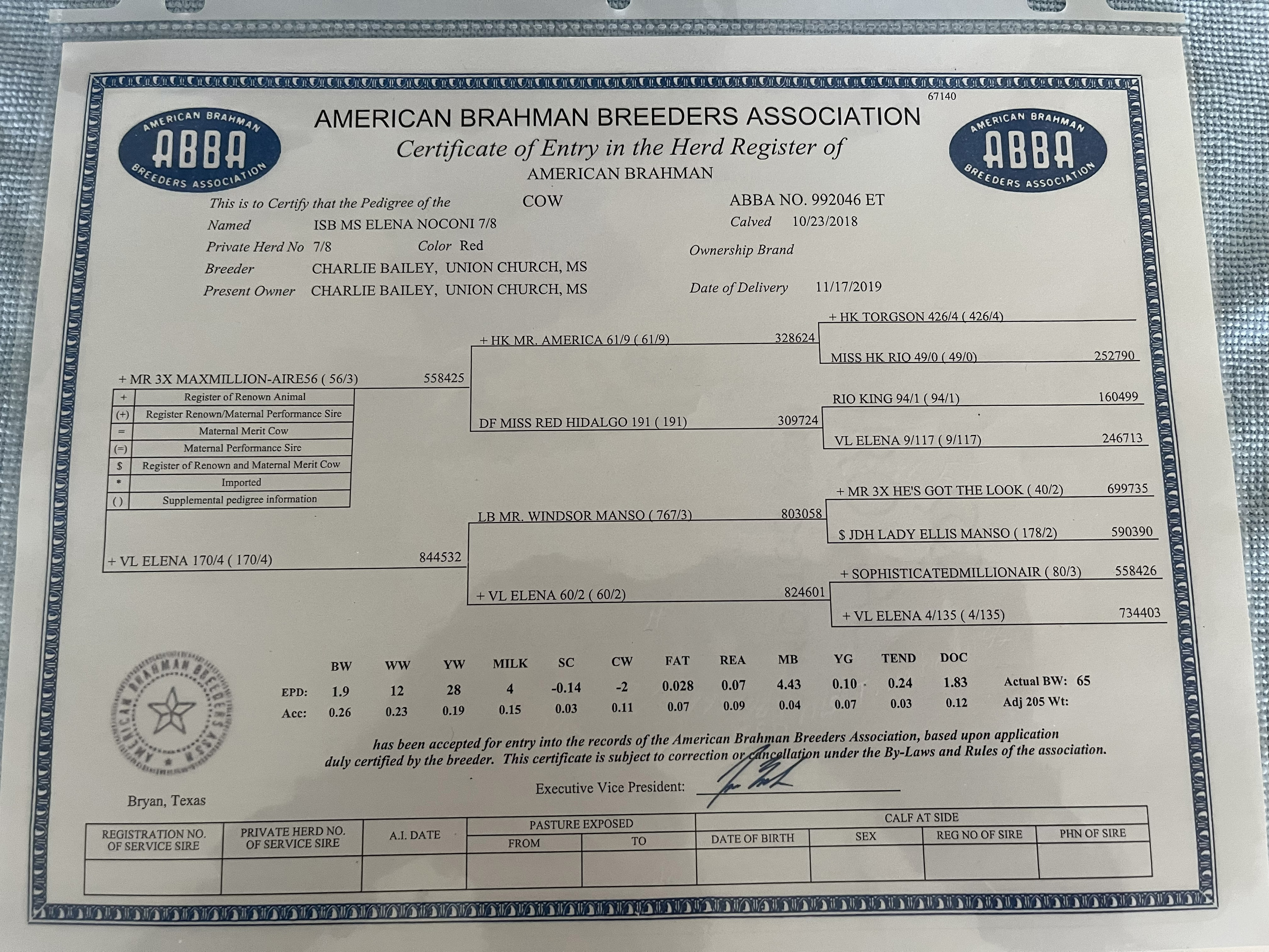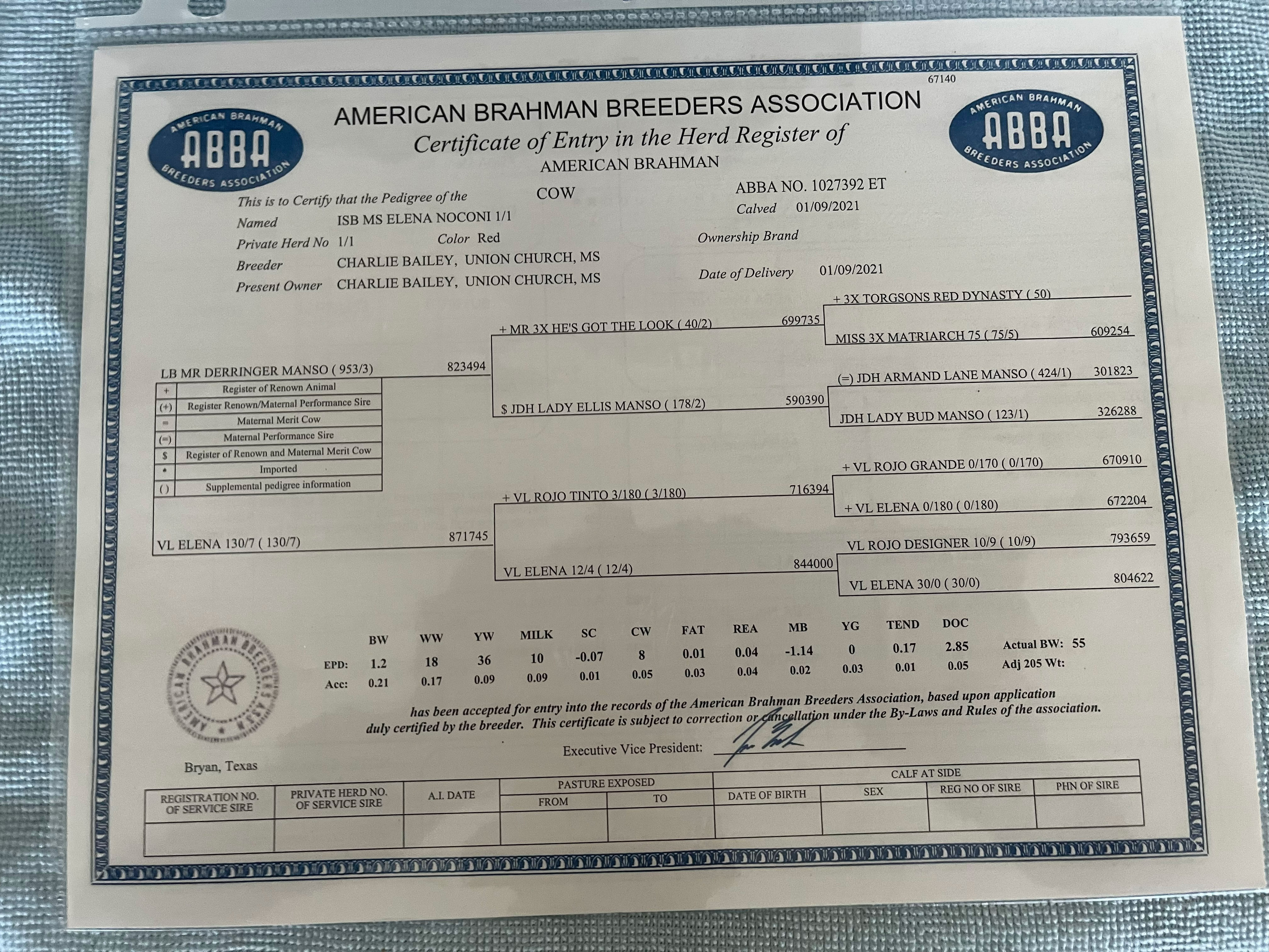 - Donor Cow - ET ISB MS Elena Noconi 7/8 -#992046 ET: Born 10-23-18 - $7,000