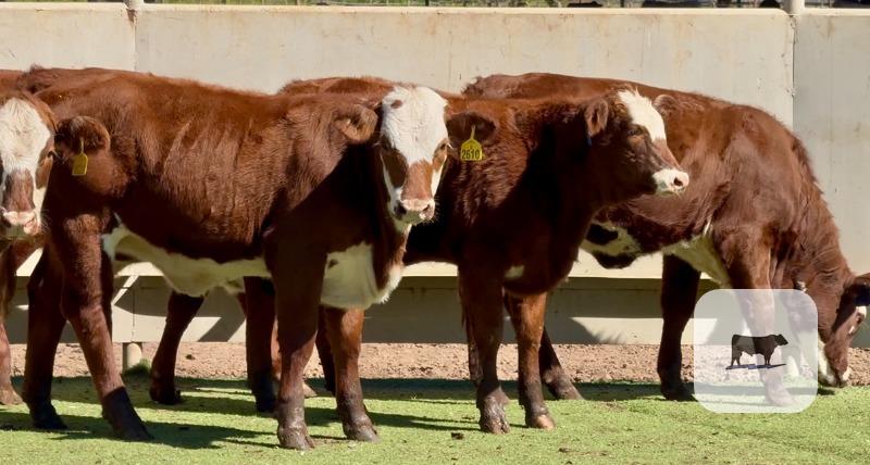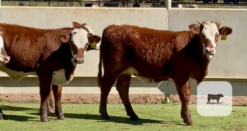 Check out this fancy, hard to find set of Santa Gertrudis-Hereford cross heifers...