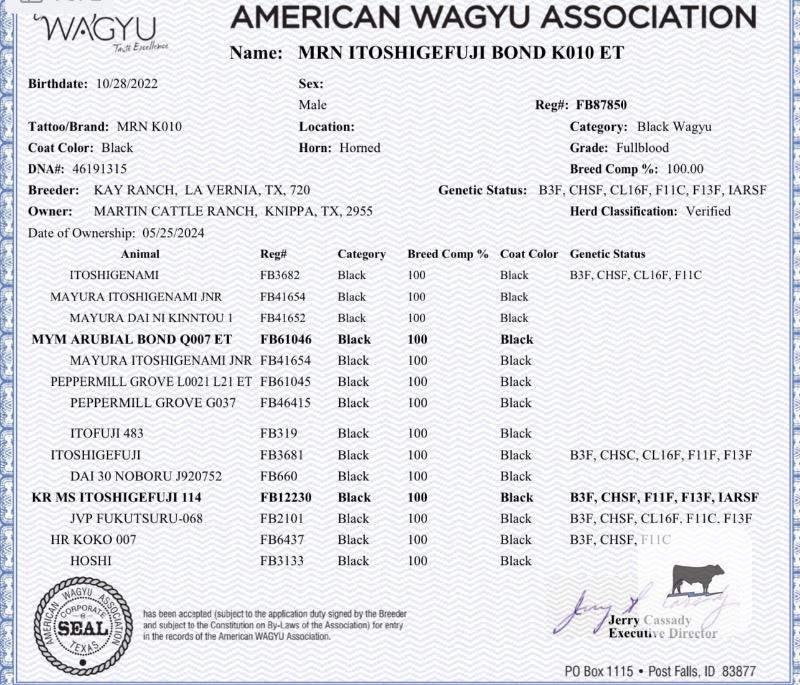 1 Fullblood Reg. Wagyu Bull... S. Central TX