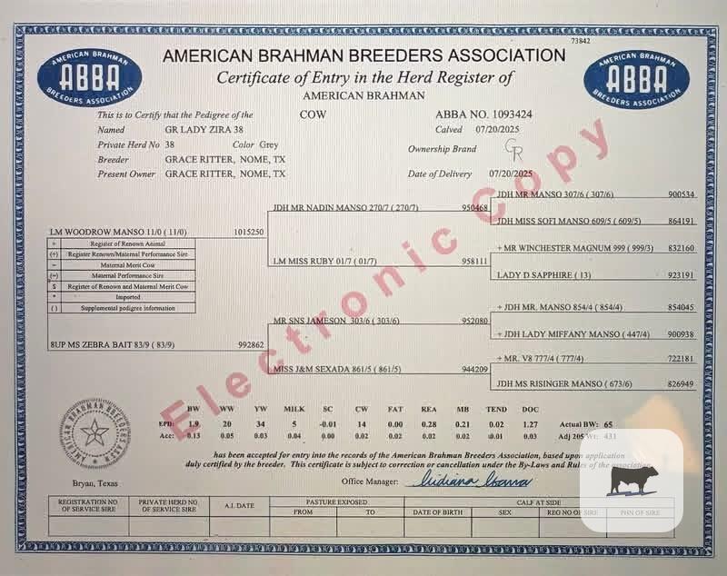 1 Reg. Brahman Rep. Heifer... Southeast TX