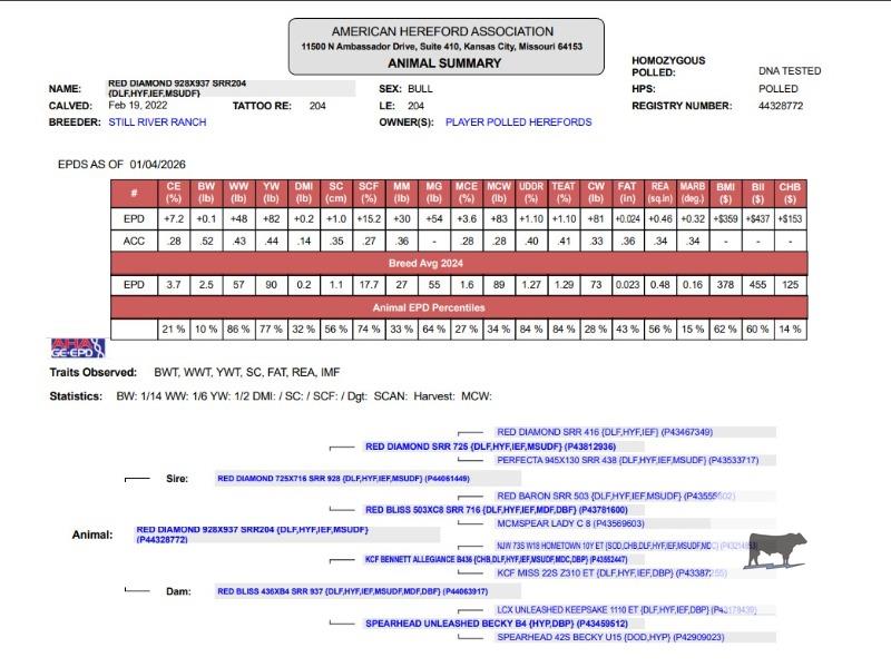 Outstanding herd bull with low birth weights. Need to replace due to having too many of his heifers!