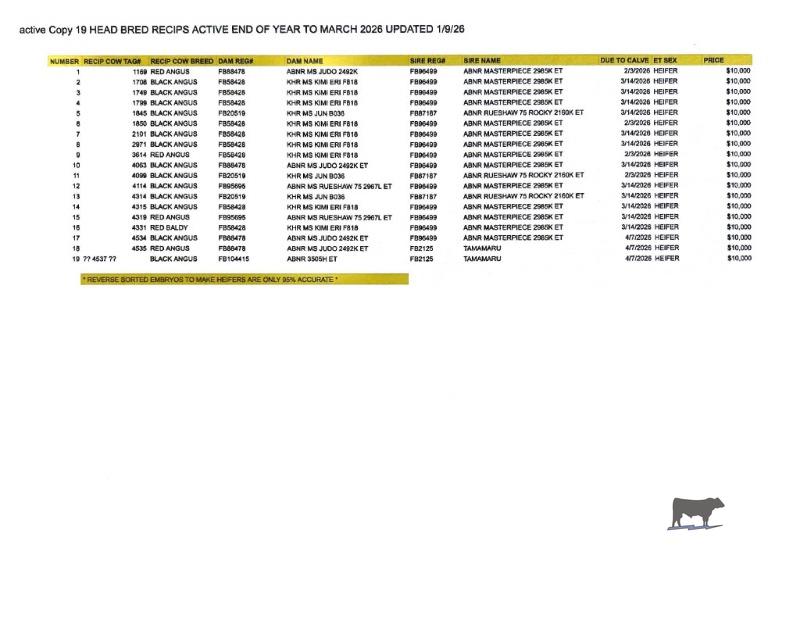 - 19 Commercial Angus Recip Cows w/ Red Wagyu Heifer Pregnancies