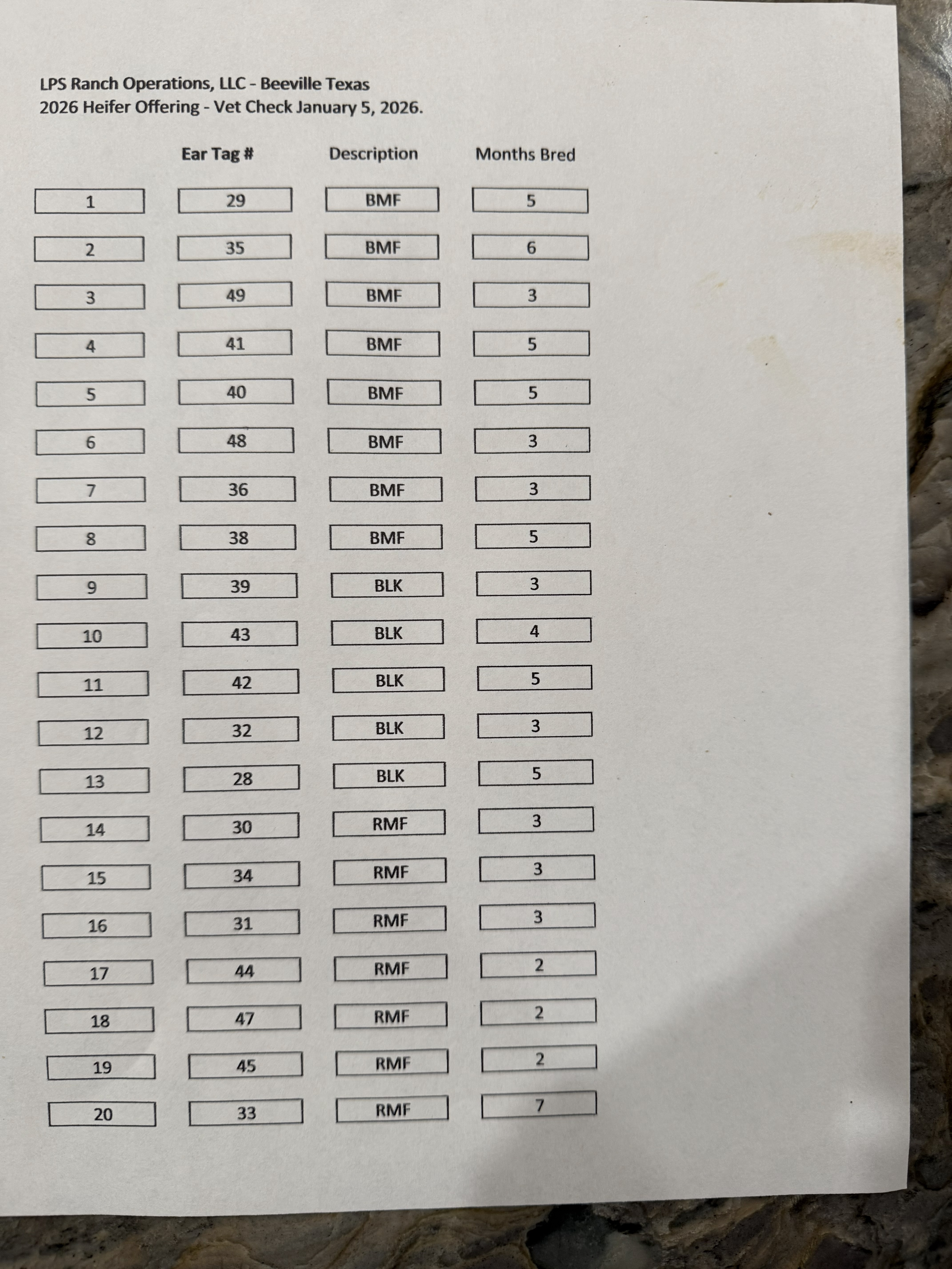 - 20 Head - 13 Black and Black Baldy and 7 'RMF'