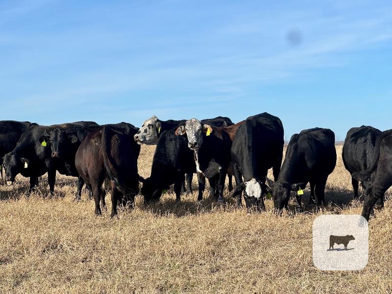 45 head of crossbred cows that have been confirmed bred and will be due for calving January through May, 2026 with three calves on the ground as of 1/20/26...