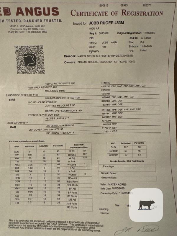 1 Reg. Red Angus Bull... Northeast TX