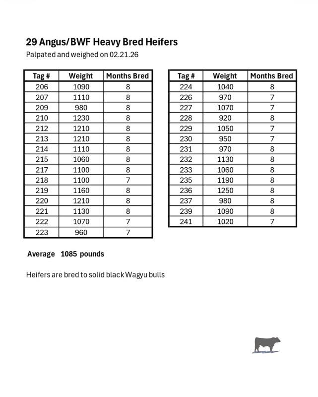 - 29 Angus/BWF Heavy Bred Heifers