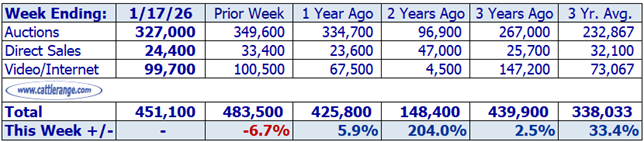 Data released by USDA on 1/20/26 for the week ending 1/17/26