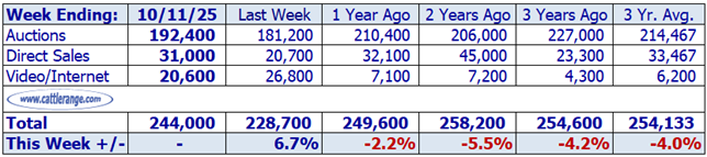 Data released by USDA on 10/13/25 for the week ending 10/11/25