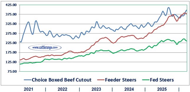 Feeder & Fed Steer Prices vs. Choice Boxed Beef Cutout