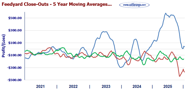 Feedyard Closeouts & Five-Year Moving Averages
