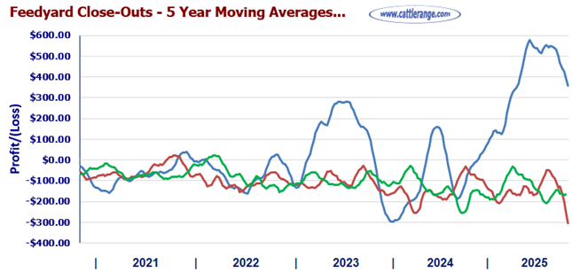 Feedyard Closeouts & Five-Year Moving Averages