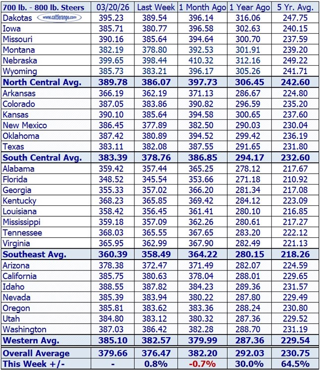 The prices below are statewide average prices compiled to show the overall price trend and do not represent prices for any specific market/region within a state.