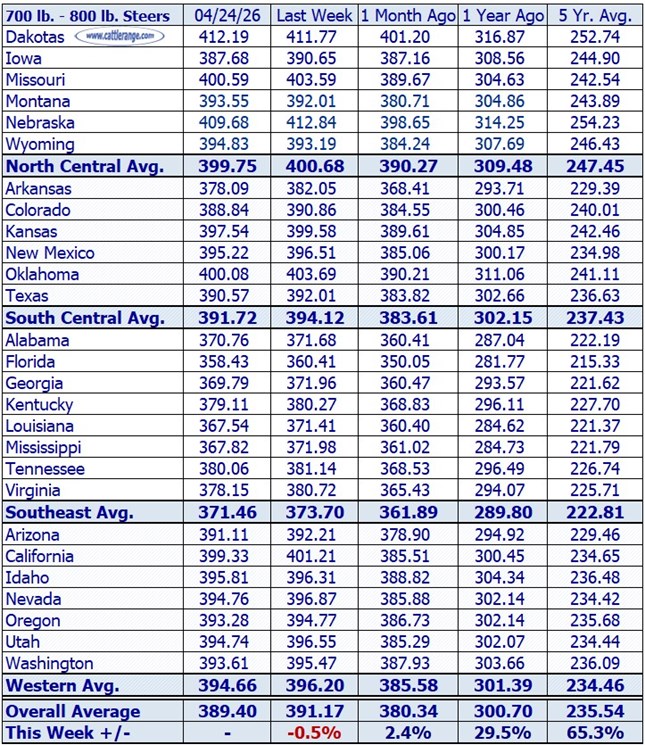 The prices below are statewide average prices compiled to show the overall price trend and do not represent prices for any specific market/region within a state.