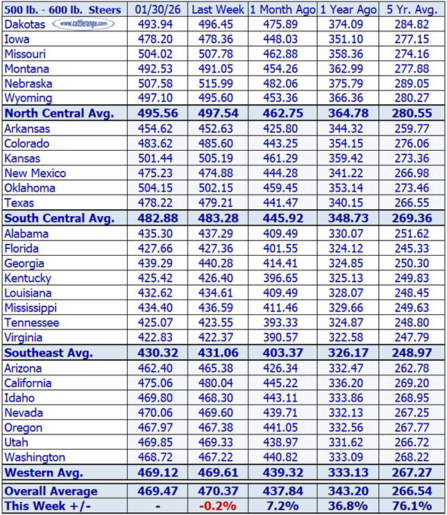 Stocker Steer Prices for the week ending 1/30/26...