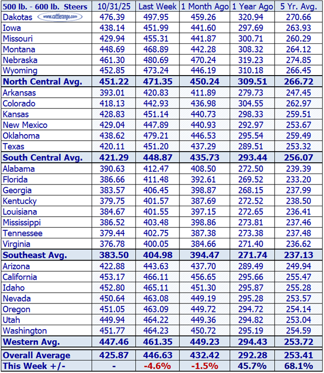The prices below are statewide average prices compiled to show the overall price trend and do not represent prices for any specific market/region within a state.