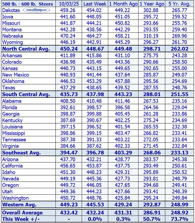 Stocker Steer Prices for the week ending 10/3/25...