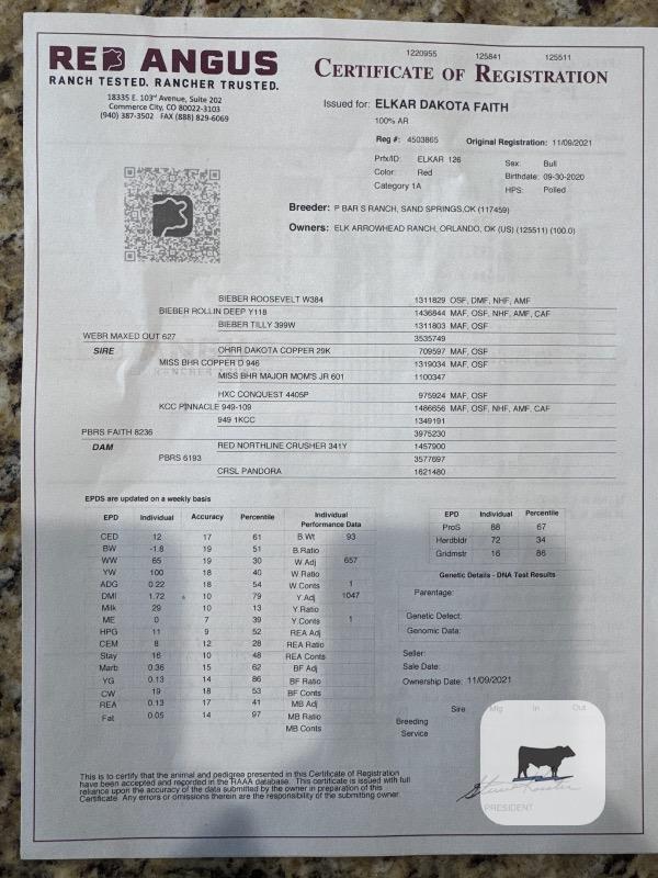 Son of Webr Maxed Out, Been a great bull and has been used on heifers with success, only selling to change up genetics. Great Disposition, loads easy and easy to work, never had a single issue with this bull. Tough one to let go. Sale is contingent upon good trich and BSE from veterinarian.