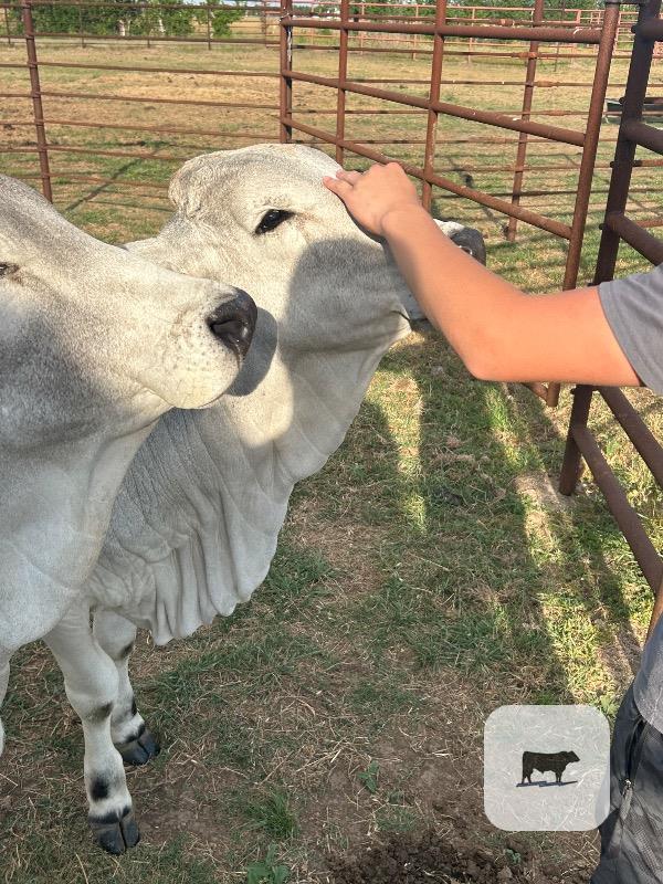 Extremely gentle reg. Brahman heifer. She will eat out of your and rub from head to tail.