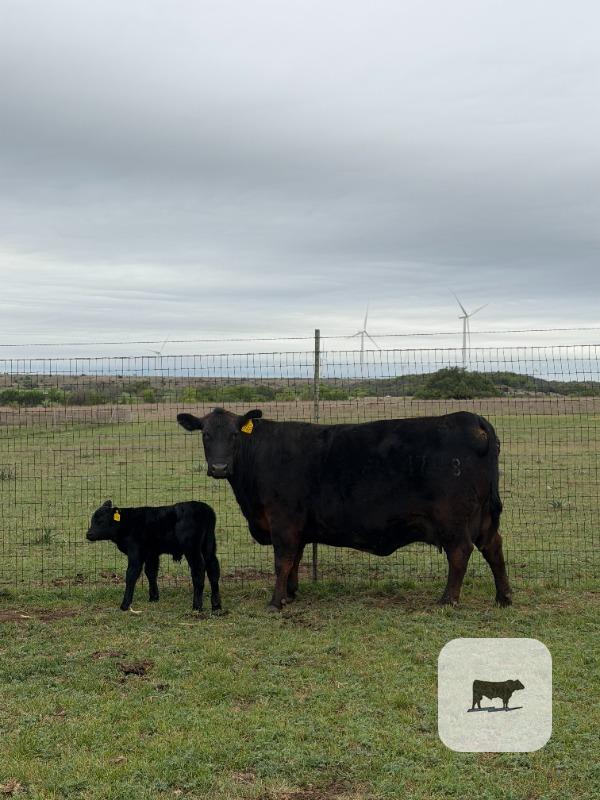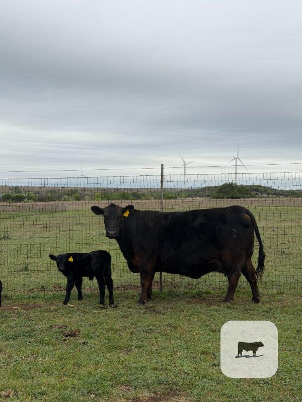 1748 sells with a bull calf at her side out of registered angus bull AAA# 21161095